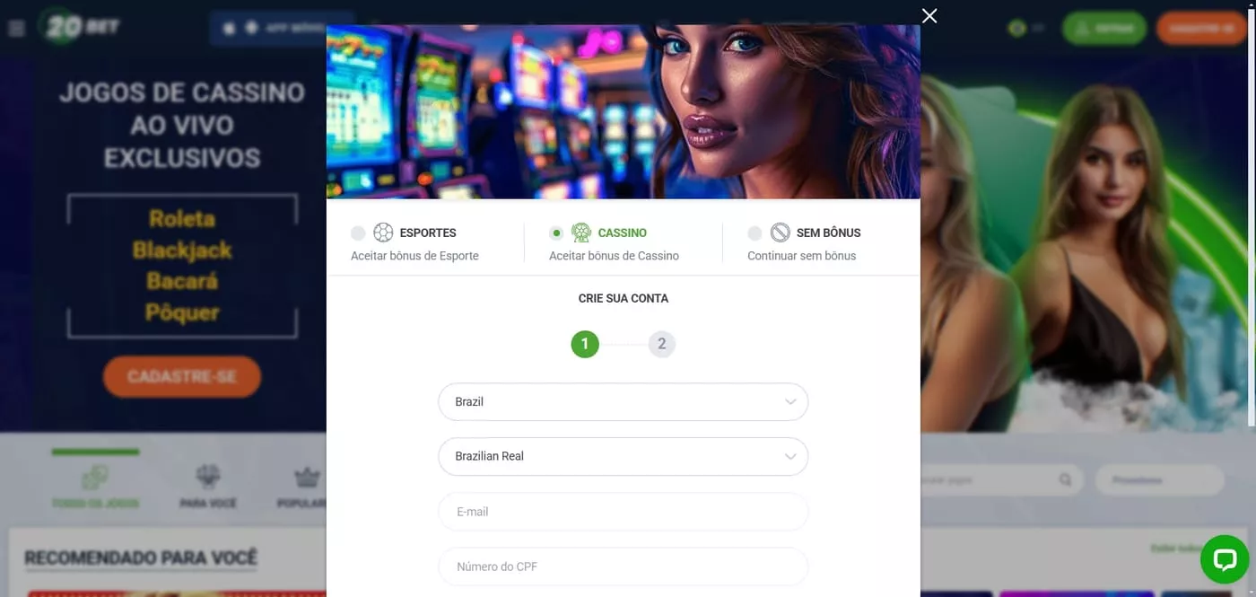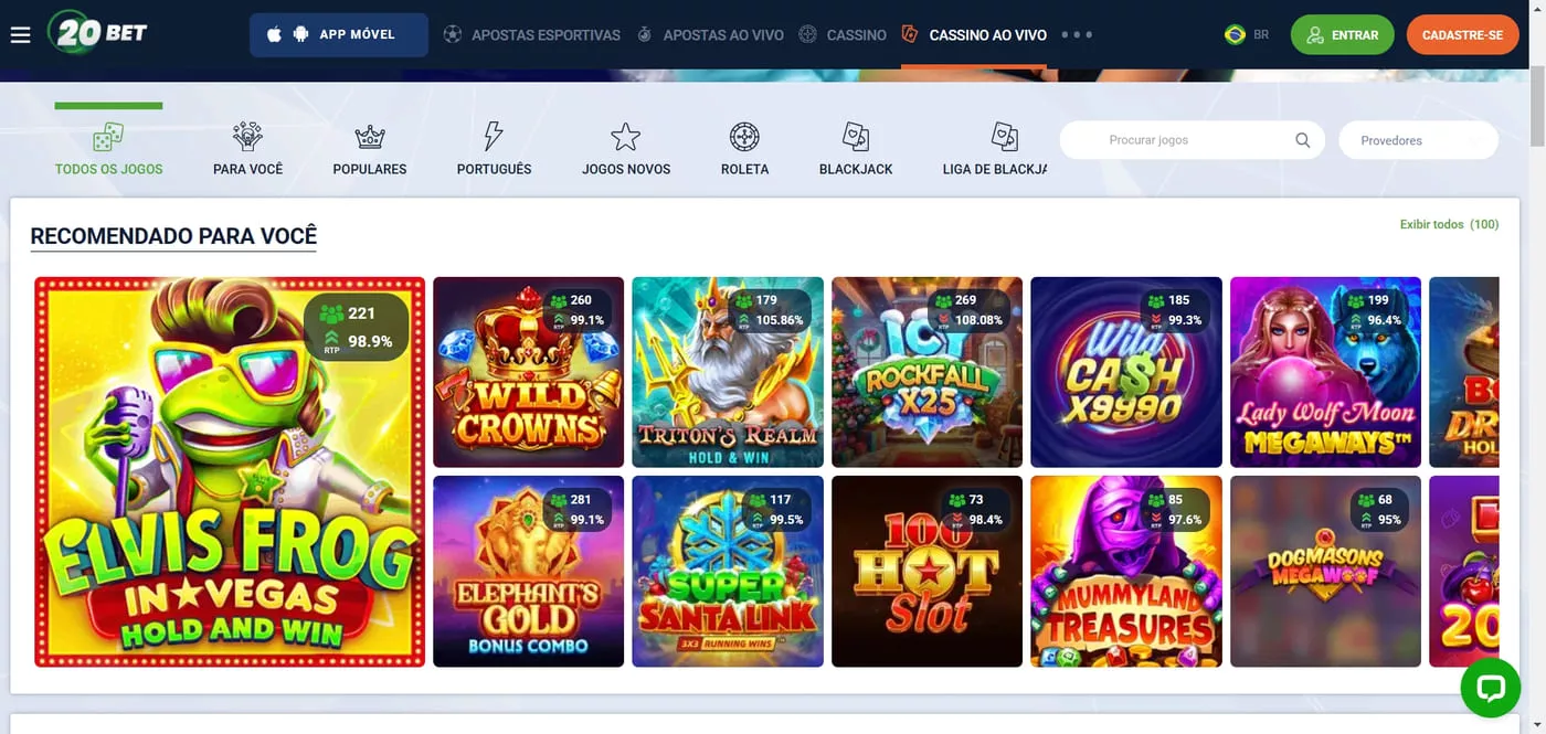 Cassino ao vivo no 20Bet Apostas