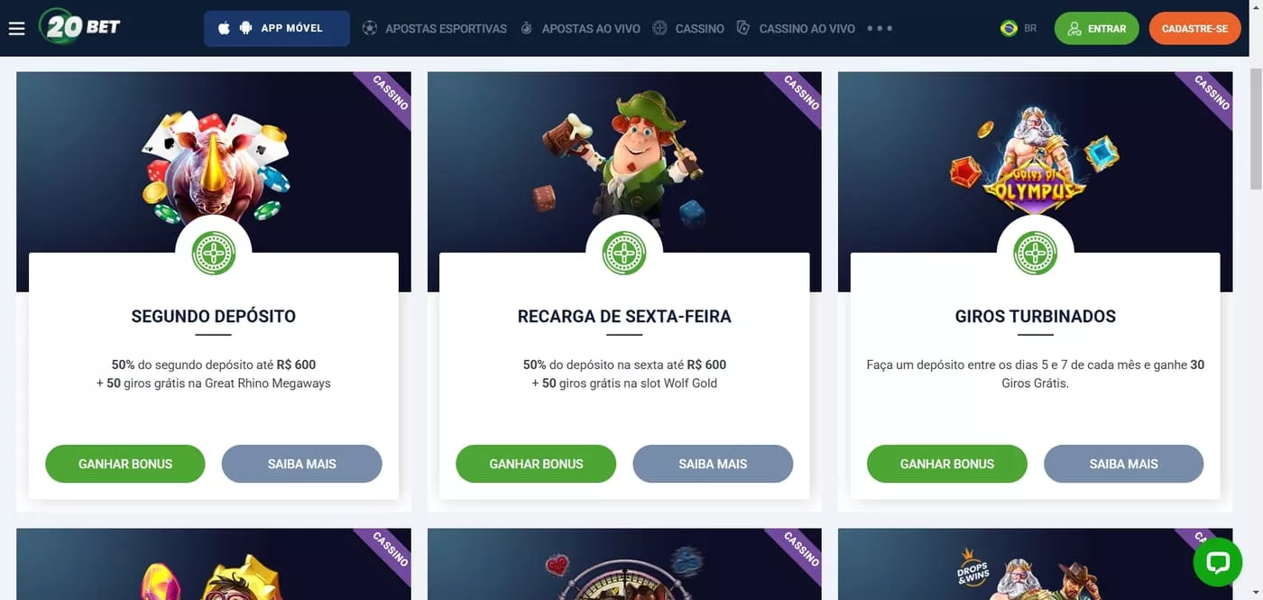 Bônus 20Bet e demais promoções do cassino