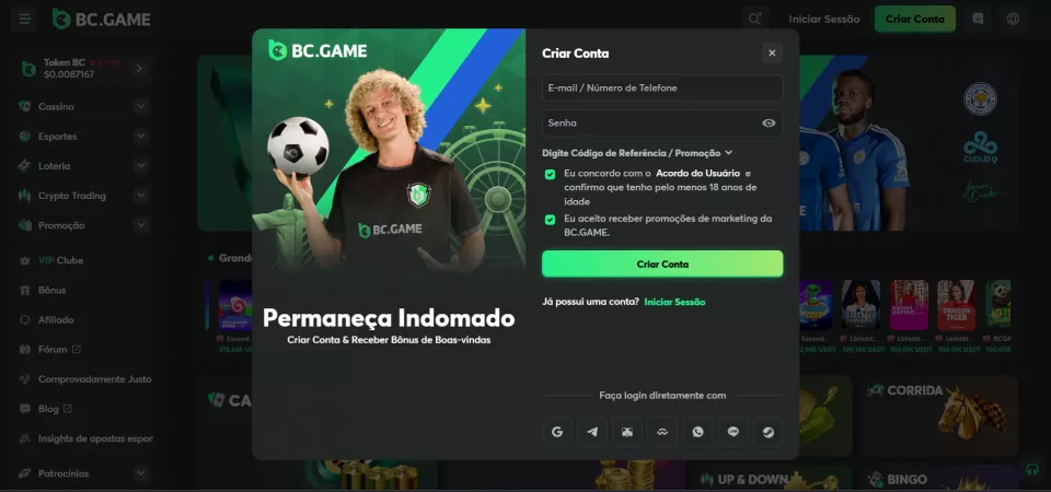 O BC.Game Brasil tem um cadastro facilitado que pode ser feito por meio do login em várias redes sociais. Por isso, é possível criar a conta em segundos. Porém, como o site ainda não concluiu o processo de regulamentação brasileira, pode ser necessário utilizar uma VPN para criar a conta e utilizar a plataforma. Veja o passo a passo a seguir de como se cadastrar: