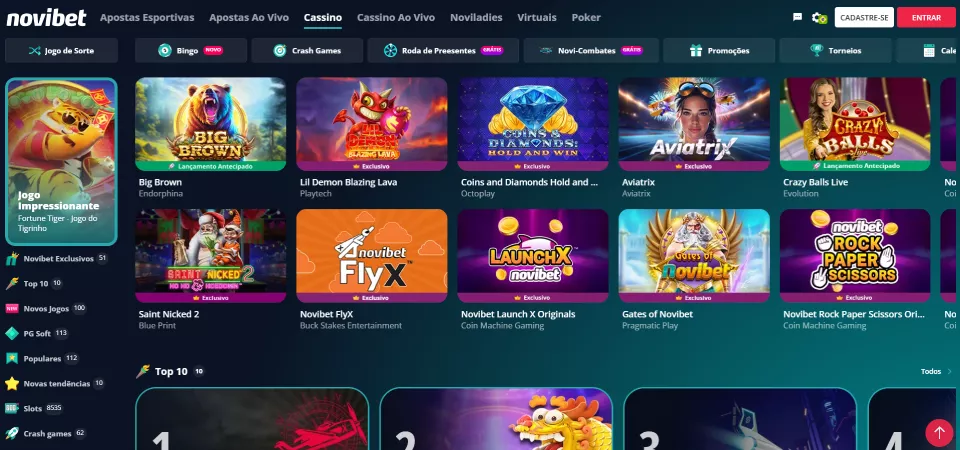 Patrocinador e embaixador de um leque de times, incluindo Fortaleza e Paulistão, o cassino Novibet apresenta um site bem estruturado e organizado, com cada área tendo um espaço dedicado.