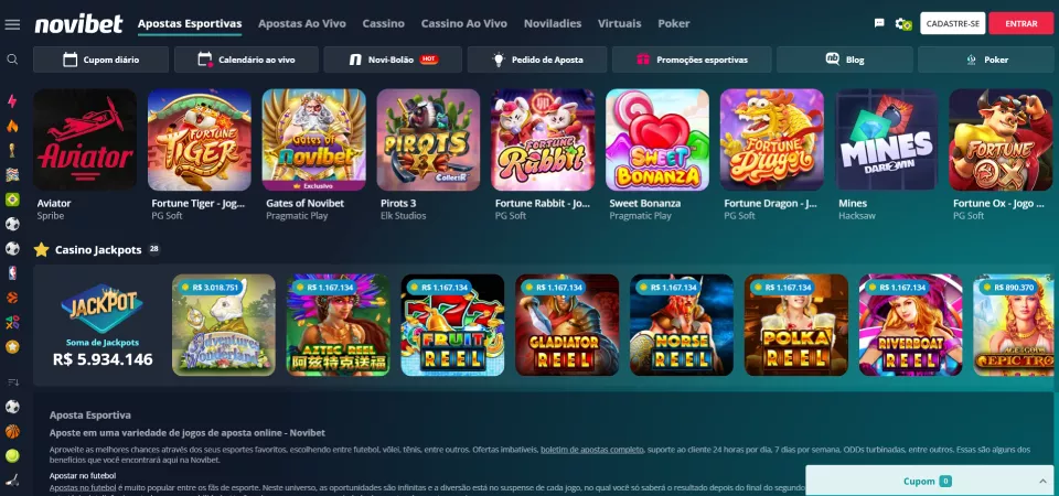 O Novibet Casino apresenta uma seção de apostas esportivas além de seus jogos de cassino?