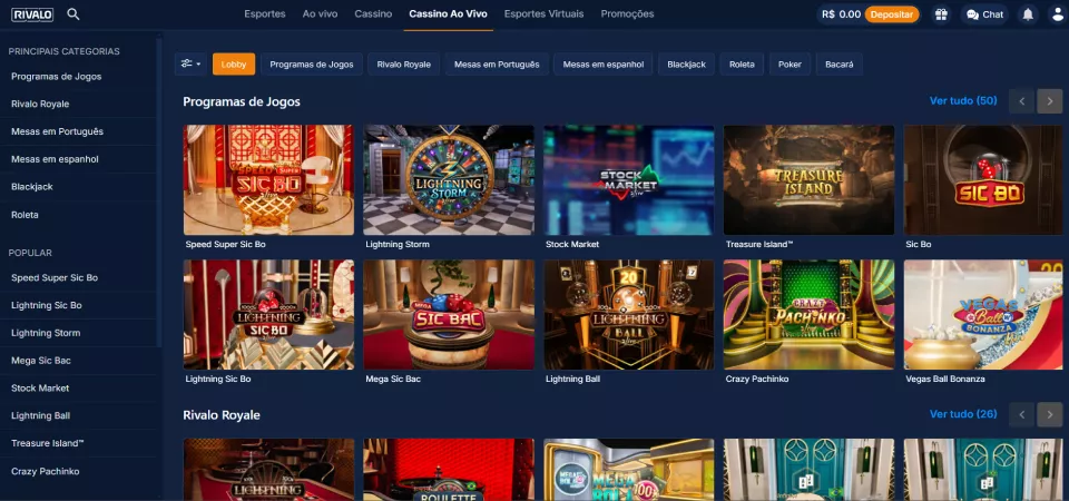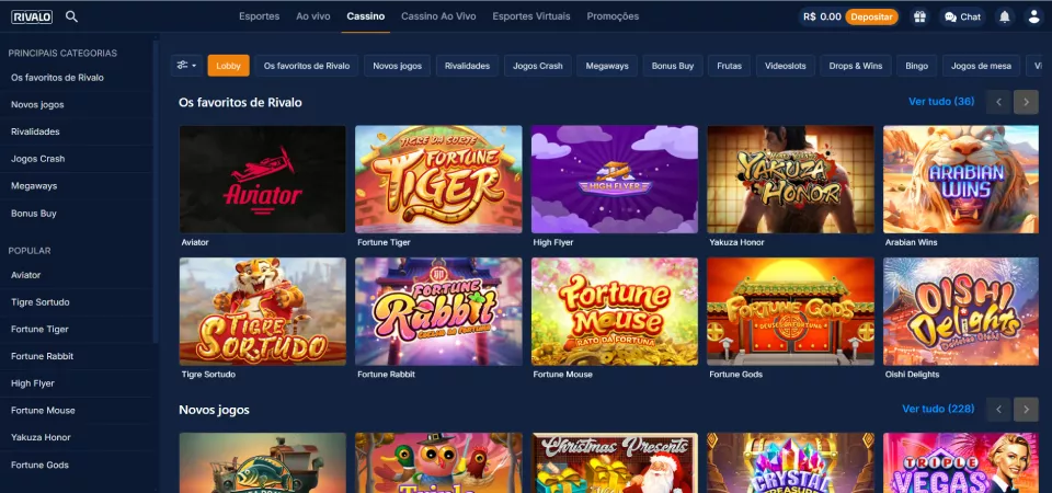 O Rivalo se destaca pela sua biblioteca de slots. As apostas esportivas têm destaque no Rivalo, mas se prefere os clássicos jogos de mesa, como blackjack ou roleta, vai adorar a versão ao vivo.