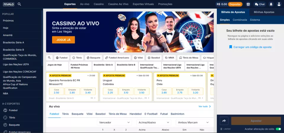 Rivalo cassino ao vivo oferece jogos em tempo real, conduzidos por dealers profissionais. É uma ótima escolha para quem deseja uma interação mais próxima e dinâmica enquanto joga, além de contar com diversas mesas disponíveis.