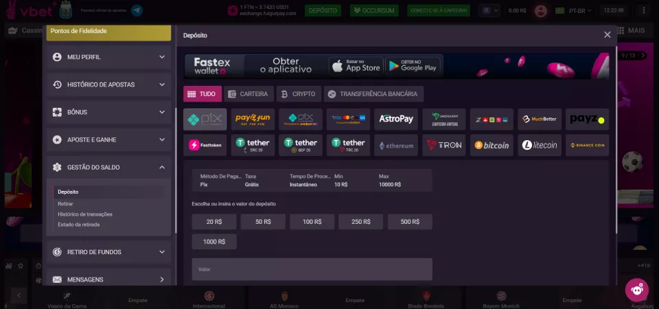 Atualmente, os jogadores podem utilizar PIX e PIX pelo Banco BTG, garantindo transações instantâneas e sem complicações.