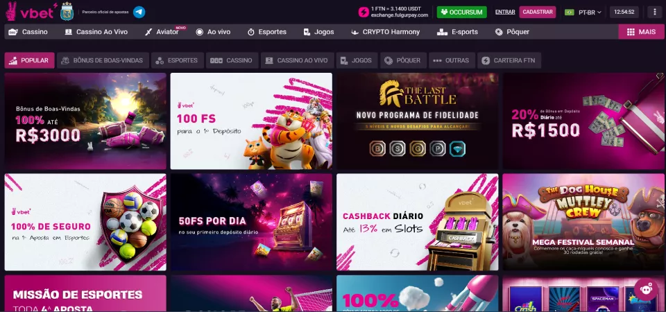 Vá até o endereço oficial do Vbet Casino pelo navegador do seu computador ou celular. Para aproveitar ofertas exclusivas, use nosso link de indicação válido.